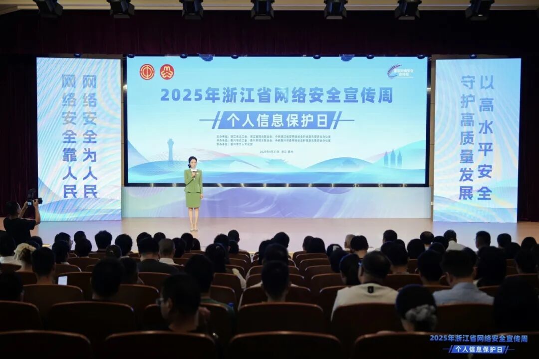 2025年浙江省网络安全宣传周个人信息保护日活动于9月21日在嘉兴举行。本次活动由省总工会、省妇联、省委网信办主办,嘉兴市总工会、嘉兴市妇联、嘉兴市委网信办承办,省总工会党组成员、副主席胡海彪,省妇联党组成员、副主席俞国娟等领导出席活动。